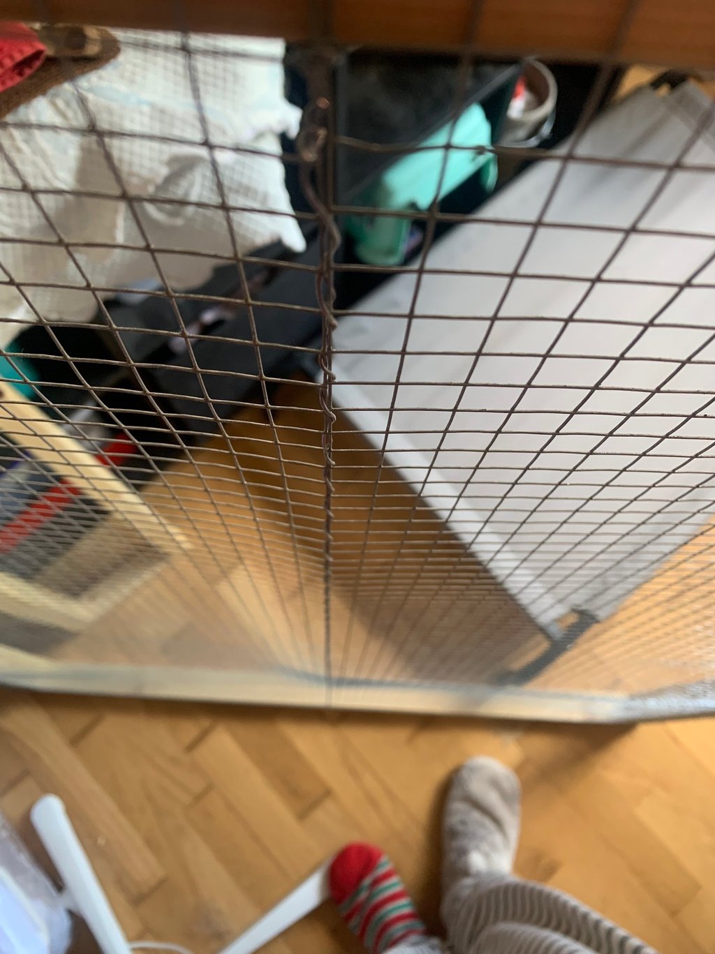 Punto 11- Rejado: cuando tengáis la configuración clara extender la red y empezamos a grapar el borde exterior del marco con nuestras grapas a la reja. En nuestro caso el patrón era de 1 cuadrado con grapa y uno sin el. Cuando hayas terminado cortar la reja con unos alicates bien afilados y continuad con el resto de las secciones.