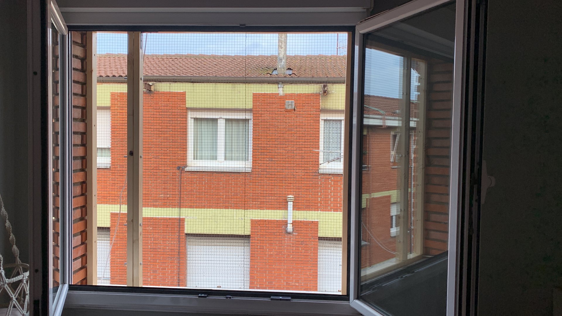Ahora que tenemos el esqueleto es el momento de colocarlo provisionalmente fuera con ayuda de alguien para comprobar que encaja y poder hacer los agujeros donde irán los tornillos en un lugar apropiado y no entre los ladrillos (otra vez , me ha pasado). Yo pongo siempre 4 fijaciones por cada lado así que tendremos que realizar 4 agujeros de cada lado.