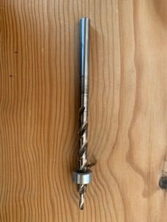 Para realizar los agujeros o bien tenemos una broca de madera como la de la imagen que permite fijar el tornillo directamente o tirando de ingenio podemos idear algo similar. Con un tope y una broca del 8 taladrar la mitad del grosor de la madera y con vuestro ancho de tornillo finalizas el agujero teniendo un resultado bastante apañado.